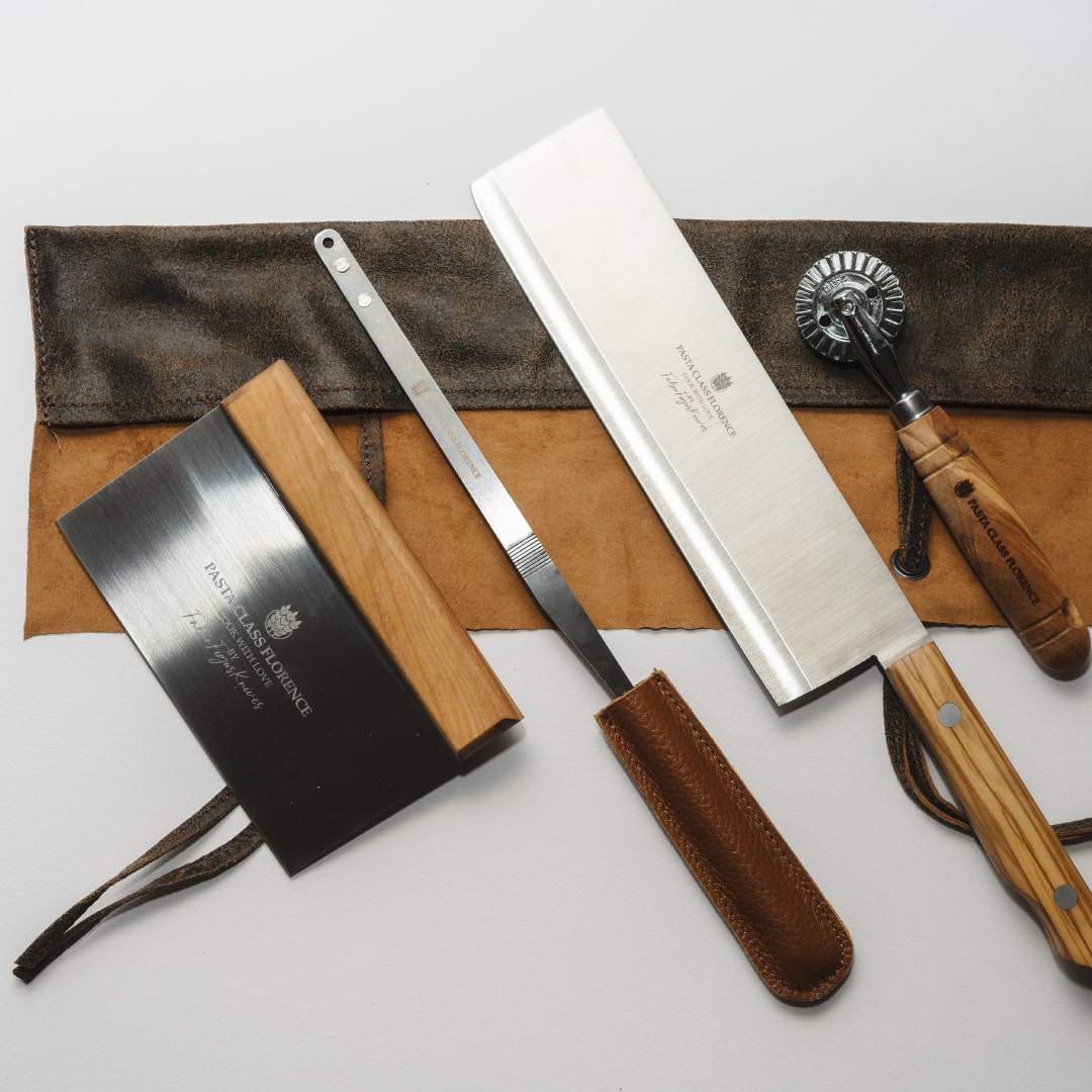 Crafted with care and designed to inspire, Pasta Class Florence Exclusive Box is meticulously assembled with premium kitchen tools from our shop. All this unites the philosophy of Pasta Class Florence and the work of FabioFigusKnives, an authentic Florentine artisan who makes knives that are truly unique pieces.